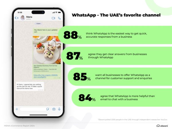 Zbooni has unveiled the findings of its 2024 MENA cCommerce Report. Polling a representative sample of 1,000 people across the UAE through independent researcher YouGov, Zbooni found that nine out of ten people prefer genuine human customer support from businesses over chatbots or generative AI. When considering preferred communications channels, WhatsApp was the overwhelming winner for regional consumers.