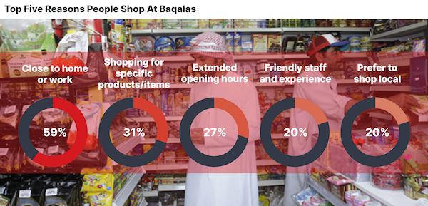 24SEVEN’s report called ‘Inside the Baqala’, also includes proprietary research data and a public survey into preferences. It found that the top reason for shopping at a baqala is the convenience of location with 59% saying they shopped at a baqala because it was close to home or work, followed by access to specific products/items (31%), extended opening hours (27%), friendly staff (20%) and a preference to shop local (20%).